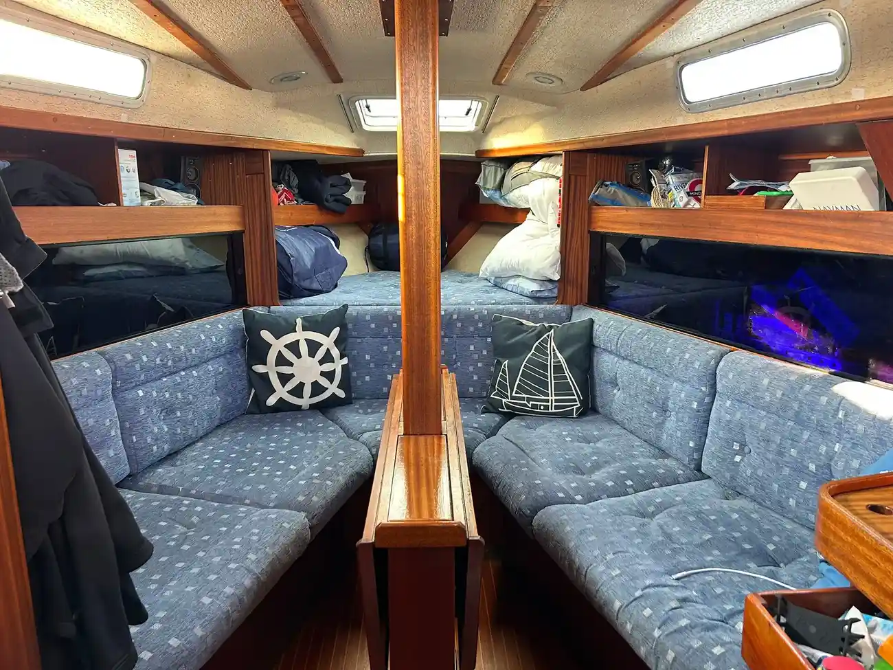 The boat has an aft cabin with access from the cockpit. There are two single berths in the aft cabin.