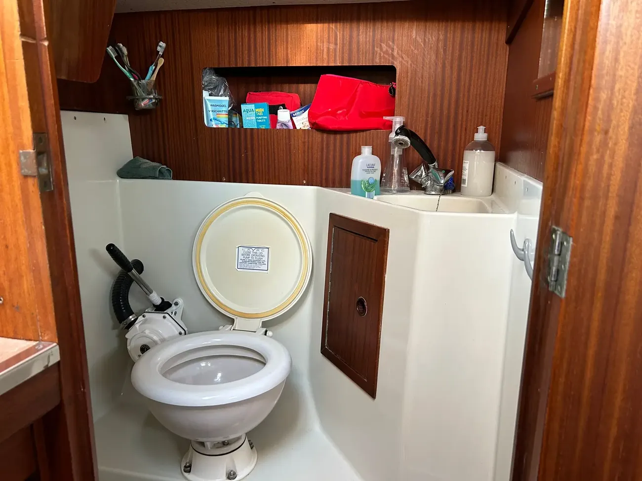 Just before the forepeak there is a separate toilet and sink.